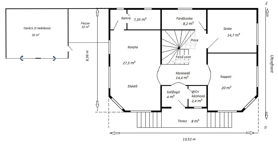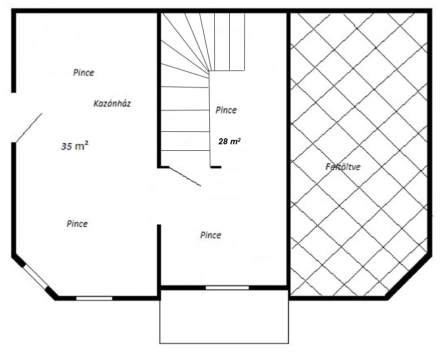 Nagyméretű kamra, a ház 2/3-a alápincézett